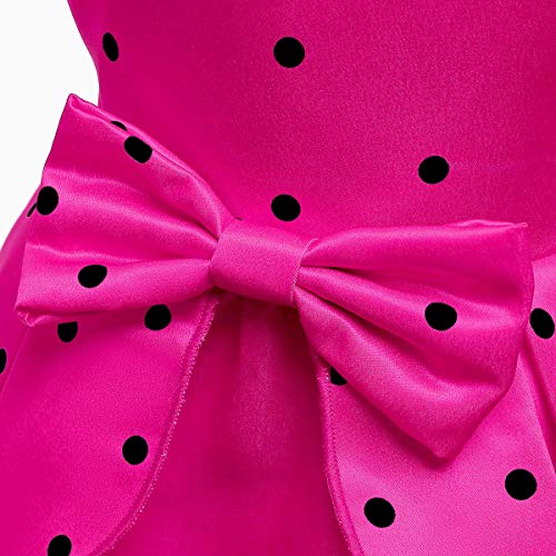 • CHIC CUTE DESIGN : Summer retro dots ruffle bowknot tutu gown dresses toddler girls. Sleeveless full circle pleated flared princess summer holiday casual cocktail tea dress skirt , mesh and satin spliced bodice, Knee length, Slim fitted bodice, adorned with wavedot printed, a cute bowknot decor front waist, hi-lo tail design make your little fairy more pretty and lovely. 1950s 60s retro Audrey Hepburn Style rockabilly cocktail swing party dress, will give your child a cute looking.