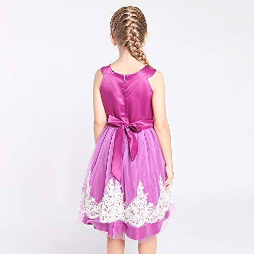 Sunny Fashion Girls Dress Vintage Flower Lace Purple Wedding Party Size 7-14 6