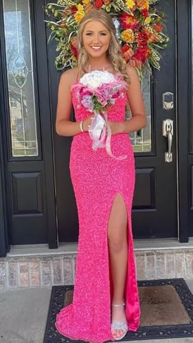 More information about Wchecalino Mermaid Prom Dresses 2025 for Teens Sequin Spaghetti Straps Sparkly Sexy Backless Evening Gown with Slit