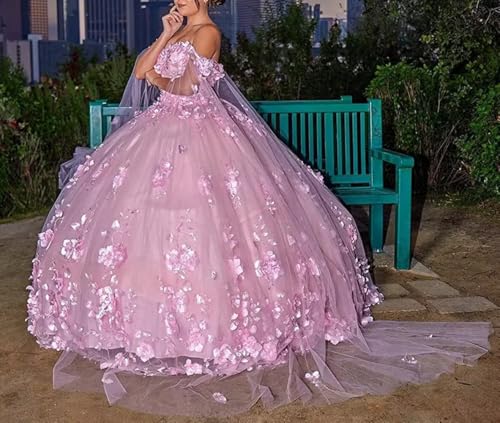 • ✿ FEATURES:Off Shoulder Quinceanera Dresses ,3D Flowers Long Prom Ball Gowns,Tulle Formal Wedding Party Dress With Cape,Corset closure, Built in bra,Lace-up back , Soft Glitter Tulle Prom Ball Gowns,Pearls 3D Flowers Floral Evening Gowns for Sweet 16 Dresses,Empire Waist Evening Party Dress,with Cape Sleeve and Floor Length.