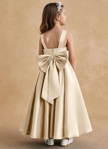 More information about MCieloLuna Glossy Satin Flower Girl Dresses O-Neck Wedding Guest Princess Ball Gown Backless First Communion Dresses