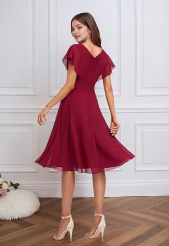 V Neck Junior Bridesmaid Dresses Short A Line Chiffon Flower Girl Dress for Wedding Guest Party Gown 6