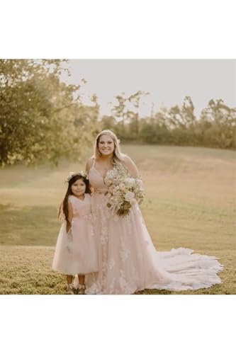 More information about Flower Girl Dress for Wedding Tea Length Lace Applique Tulle Princess Kids Birthday Pageant Party Gown with Bow-Knot