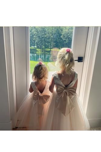 Flower Girl Dress for Wedding Tea Length Lace Applique Tulle Princess Kids Birthday Pageant Party Gown with Bow-Knot 6