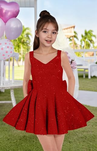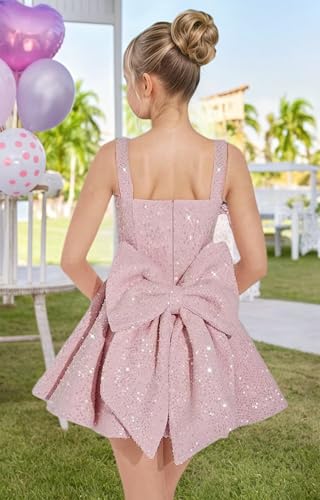 V Neck Sequin Homecoming Dresses for Teens Sparkle Cocktail Party Dress with Bow for Girls 5