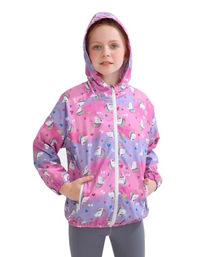 Toddler Girls Jacket Lightweight Hooded Windbreaker Kids Water-Resistant Light Rain Jacket Print Outwear 4-10Y 5