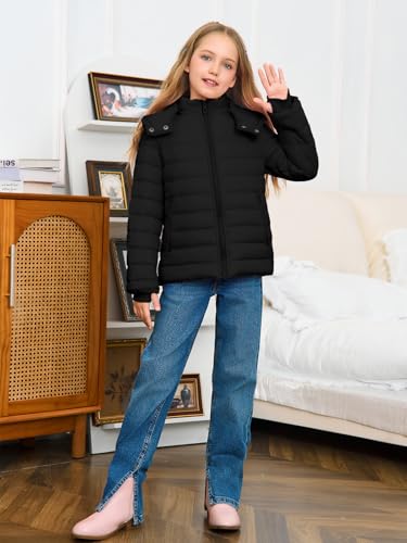 Haloumoning Girls Hooded Puffer Jacket Kids Winter Quilted Down Coats with Zipper Pockets 5-14 Years 6