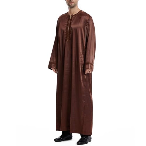 HOT ! Throbe Islam for Men Long Sleeve 1/4 Zip Up Muslim Thobe Plus Size Casual Middle Eastern Kaftan Eid Prayer Robe
