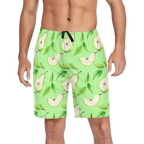 Green Pear Leaves Pajama Shorts for Men Lounge Pants Pajama Pants Men's Separate Bottoms with Pockets, S-XXL-XXL 1