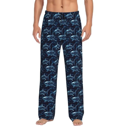 Mens Pajama Pants - Cyber ​​cool Shark Print Soft Sleep Lounge Pants For Men, Casual Pj Bottoms With Pockets 1