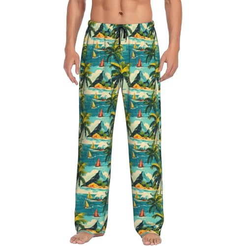 HOT ! Mens Pajama Pants - Hawaii Summer Style Print Soft Sleep Lounge Pants For Men, Casual Pj Bottoms With Pockets