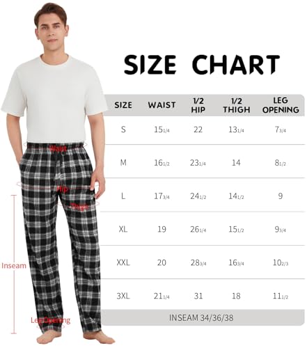 HOT ! Idtswch Tall Mens Pajamas Pants 32/34/36/38 Long Inseam Plaid Lounge Pants Sleepwear Bottoms
