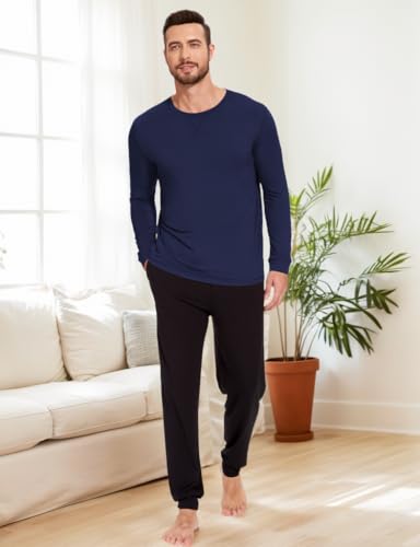 GYS Bamboo-Derived Viscose Men's Pajama Top Soft Long Sleeve Sleep T-Shirt 2