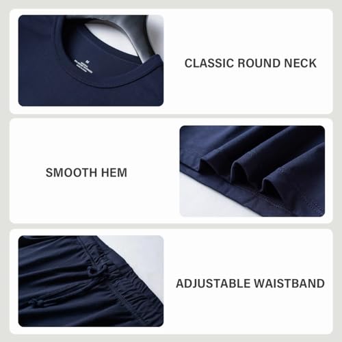 • Ultra-Soft & Breathable Fabric: Made from 95% Viscose + 5% Spandex, this men's sleepwear set is lightweight, skin friendly, and moisture wicking which keeps you cool and dry all night. The fabric's breathability ensures no sweating or stickiness, perfect for year-round comfort.