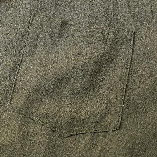 Generic Summer Shirts for Mens 2024, Trendy Short Sleeve Blouse Button Down Cotton Linen Shirt for Men Solid Color Front Pocket Tops Army Green, XX-Large 5