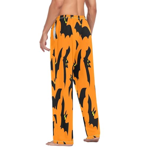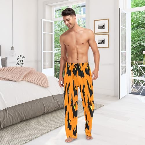 HOT ! Qilmy Halloween Bats Men's Cotton Pajama Pants, Lightweight Lounge Sleepwear with Drawstring and Pocket