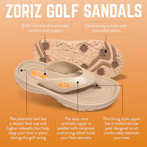 HOT ! ZORIZ Collegiate Series Golf Sandals for Women and Men, Thong Flip Flops With Removable Spikes, Golf Footwear With Deeper Heel Cup and Higher Sidewalls