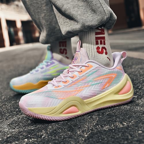 More information about Men's Women's High-Top Basketball Shoes - Breathable Mesh with Cushioned Midsole & Non-Slip Rubber Outsole, Vibrant Split-Color Design Sport Shoes, Indoor/Outdoor Court Sneakers