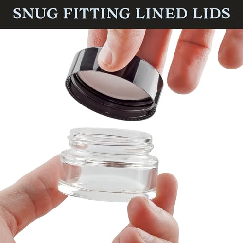 Cornucopia 15-Milliliter Clear Glass Balm Jars (12-Pack); 1/2 oz Cosmetic Jars with Lined Black Plastic Lids 3