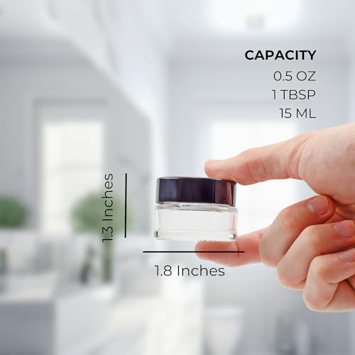 Cornucopia 15-Milliliter Clear Glass Balm Jars (12-Pack); 1/2 oz Cosmetic Jars with Lined Black Plastic Lids 7