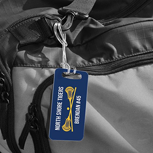 • EXTREMELEY DURABLE! Our lacrosse bag tag is made from a sturdy plastic material making it tough enough to endure the toughest of travel conditions. Easily attach it to your luggage or everyday bag with the strong, long-lasting, clear flexible loop at the top. It is sure to stay on your bag whether it is being tossed around at the airport or rolling around the bottom of the bus on the way to the field.