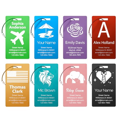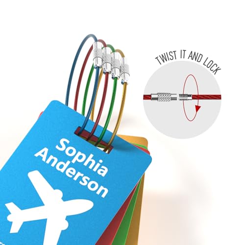 4 Pack Personalized Luggage Tags, Custom Engraved Aluminum Luggage Tags with Your Personalized Text, Waterproof Metal Name Tags with Steel Loop for Bags, Suitcase, Baggage, Backpack (Blue, Large) 6