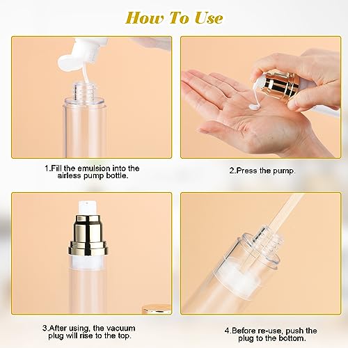 4 Pack 30ml/1oz Clear Airless Pump Bottle Plastic Vacuum Pump Press Container Empty Lotion Dispenser for Cream Toiletries Liquid Foundation Cosmetic Sample Travel - Gold 6