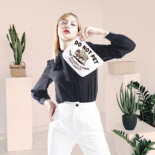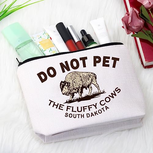 HOT ! Bison Buffalo Gift Do Not Pet the Fluffy Cows Zipper Pouch South Dakota Gift Midwest Badlands National Park Gift Makeup Bag (SOUTH DAKOTA Bag)