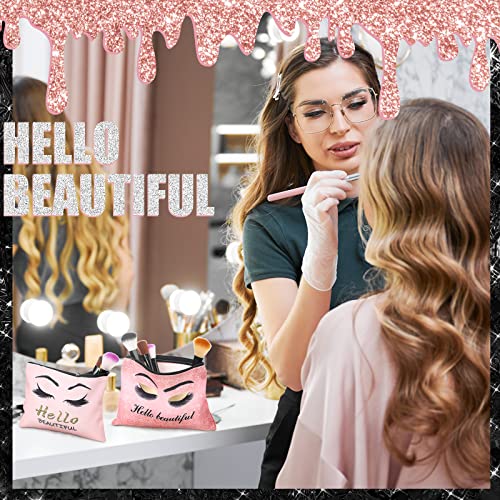 Gerrii 6 Pcs Hello Gorgeous Makeup Bag Pink Eyelash Canvas Cosmetic Bags Small Eyelash Purse Lipstick Travel Pouch Inspirational Gift for Women Toiletries Accessories Organizer 2