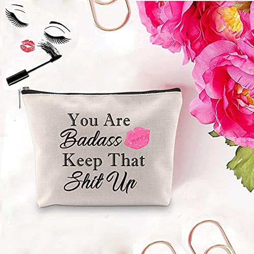 PXTIDY Funny Saying Quote Makeup Bag You Are Badass Keep That Shitup Cosmetic Bag Makeup Pouch Travel Bags Funny Gift (beige) 6