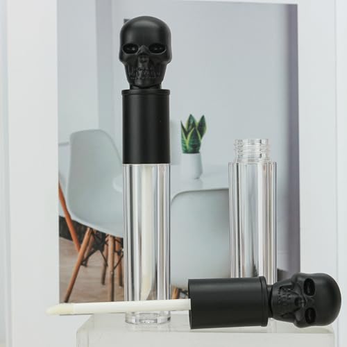 More information about COSIDEA 8pcs Empty Round 5ml 0.17oz Black skull lip gloss tubes with wand fancy Lipgloss tube containers for lip oil packing