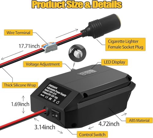 • Versatile Compatibility for Maximum Utility:This step-down converter is expertly designed to work for Dewalt 20V batteries (models DCB200, DCB201, DCB202, DCB203, DCB206), providing seamless and stable performance for a variety of automotive devices. This versatile adapter allows you to efficiently utilize your for Dewalt batteries across multiple applications, making it an essential tool for your car.