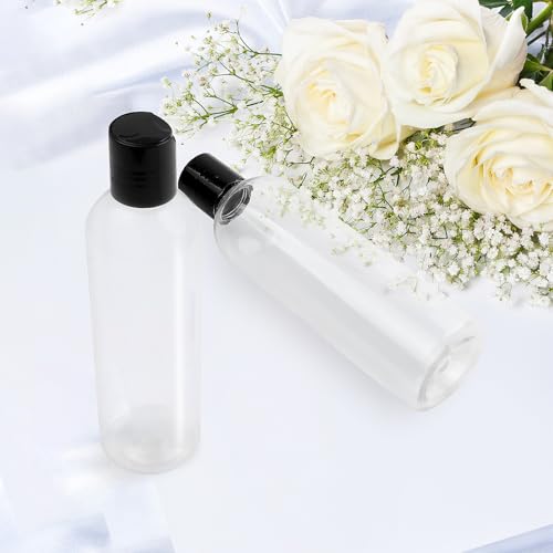 34 Pcs Plastic Travel Bottles with Disc Top Flip Cap Empty Refillable Squeeze Travel Containers for Shampoo Lotions Cream Toiletries Liquid Body Soap (Clear, 8 oz) 4