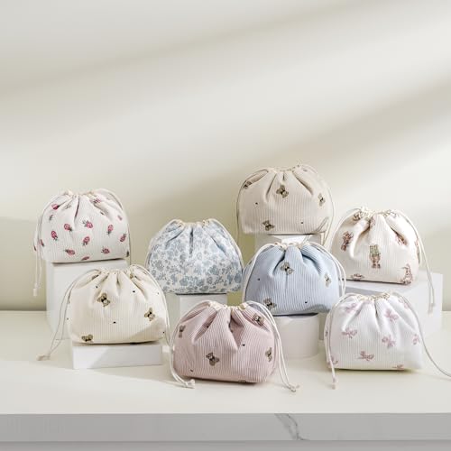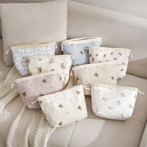 Aesthetic Corduroy Drawstring Makeup Bag, Cute Coquette Drawstring Cosmetic Bag with Canvas Lining, Bear Pattern Travel Makeup Organizer Case for Women Girls (05 Great Bear) 7