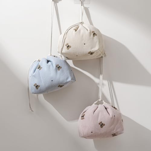Aesthetic Corduroy Drawstring Makeup Bag, Cute Coquette Drawstring Cosmetic Bag with Canvas Lining, Bear Pattern Travel Makeup Organizer Case for Women Girls (05 Great Bear) 3