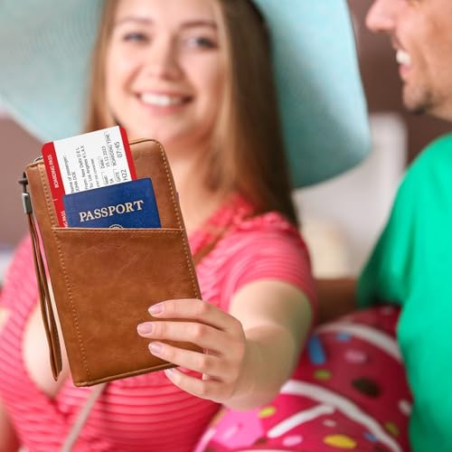 Dual Passport Holder For Travel With RFID Blocking-Full Grain Leather,Holds 6 Passport With 4 Card Slots,Family And Friends Travel 5