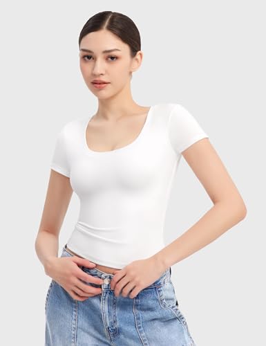 • STYLISH TOPS: This scoop-neck option reveals some skin while still leaving plenty to the imagination, and the tight sleeves and slim cut make the fit look good on just about everyone. The fabric is soft, thin, but not see-through. Perfect for warmer whether. This going out tops for women also comes in a variety of fun and unique colors, allowing you to express your personal style effortlessly.