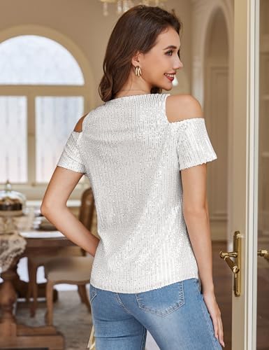 HOT ! Ahlaray Cold Shoulder Sequin Top for Women Short Sleeve Sparkly Blouse Glitter Going Out Tops Party Shirt, S-XL