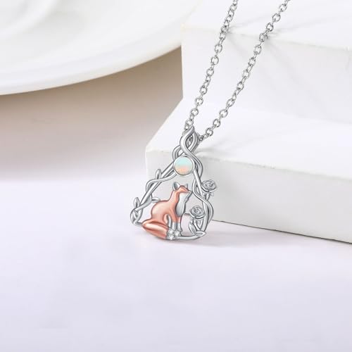 925 Sterling Silver Animal Companion Series Opal Necklace for men and Women Giraffe/Tiger/Dog/Cat/Bear/Deer/Cow/Fox 5