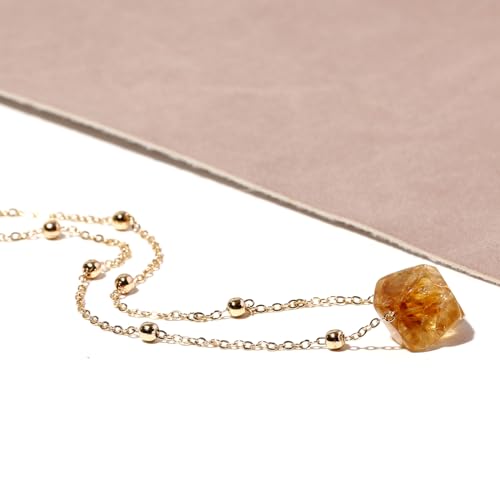 Jewever Raw Citrine Necklaces for Women Wealth 14k Gold Plated Chain Necklace Bring Wealth Lucky November Birthstone Jewelry Gifts (16"+2") 7