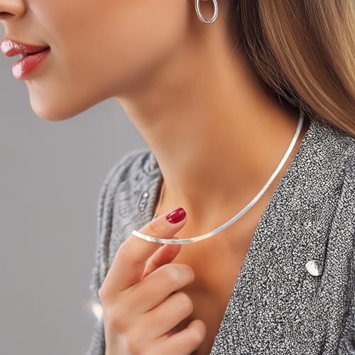 HOT ! Herringbone Chain Necklace for Women Men, Real Gold Over Sweatproof, Water-Resistant, Everyday Wear, 2mm-2.5mm-3mm-4mm-5mm Wide Flat Snake Chain 14k White Gold Coating Stainless Steel