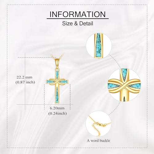 • Size: Infinity Cross Pendant:22.2mm * 6.2mm(0.87in * 0.24in) Chain length: 16+1+1 inch adjustable extender.Pendant weight:1.3g. Packaged in an Elegant Gifts Box.