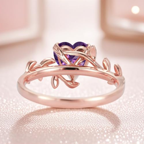 1 Carat Heart Cut Gemstone Engagement Ring for Women, 10K 14K 18K Solid Gold Bridal Birthstone Ring Leaf Vine Art Deco Wedding Promise Rings Gifts for Her Bride Wife Mom Nana Mothers Day 5