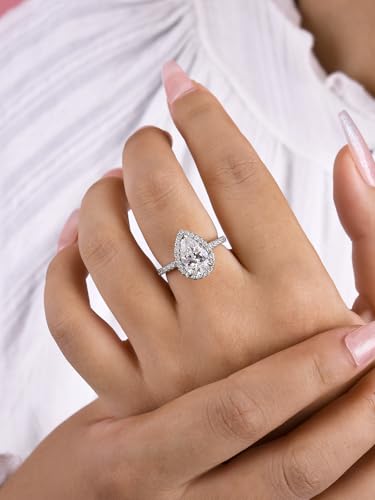 3.0CT 5A Grade Pear Cut Cubic Zirconia Engagement Ring for Women, 18K White Gold Plated Sterling Silver Promise Ring 5