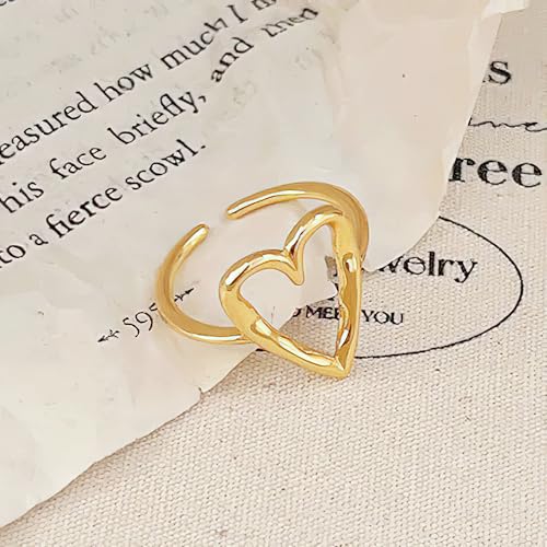 Irregular Hammered Hollow Heart Stackable Ring for Women 925 Sterling Silver Minimalist Stylish LOVE Heart Rings to Daughter Mom 14K Gold Plated Adjustable Open Band Ring Wedding Hallowmas Jewelry 6