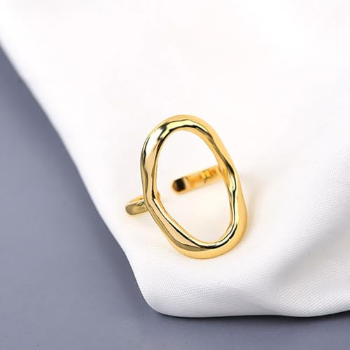 HOT ! Minimalist Oval Band Ring for Women Gold-Toned Hollow Circle Open Wrap Finger Rings Adjustable Geometric Simple Jewelryfor Wedding Holiday