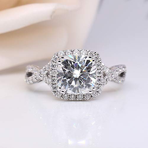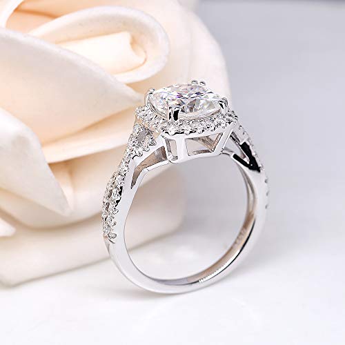 DovEggs Moissanite Engagement Rings for Women 2ct Center 7.5x7.5mm GHI Color Cushion Cut Near Colorless Moissanite Halo Split Shank Wedding Ring 14k Gold QUALITY Sterling Silver 6