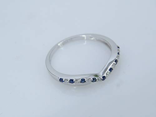 HOT ! 14K Solid Gold Round Cut Blue Sapphire & White Diamond Anniversary Wedding Stackable Contour Guard Band