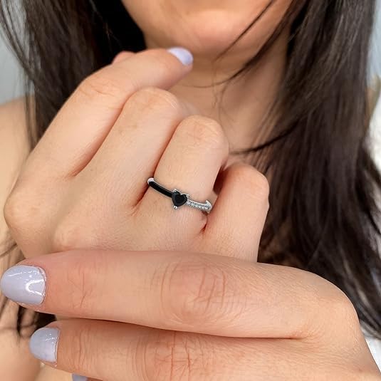 More information about Love Me Until I'M Me Again Black Heart-Cut Half Enamel Ring, S925 Sterling Silver Heart Rings Self-Love Ring Gift, Love Heart-Cut Half Enamel Promise Rings