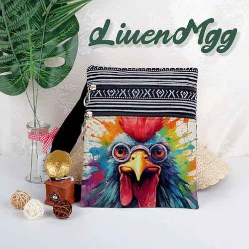 HOT ! Glasses Rooster Messenger Bag Small Ethnic Pattern Printed Adjustable Strap Crossbody Zipper Bag Glasses Rooster Phone Bag Wallet Cute Shoulder Handbag for Women Friends